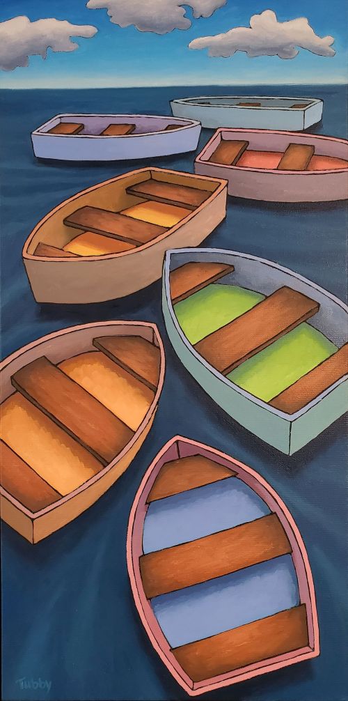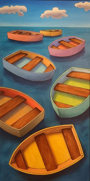Idyll at the wharf, 25 1/2″H x 25 1/2″W, $2900Line Dancing, 25 1/2″H x 25 1/2″W, SoldPerspectives, 25 1/2″H x 37 1/2″W, $3800Traffic VI, 37 1/2″H x 37 1/2″W, SoldDivergent Dories, 25 1/2″H x 13 1/2″W, SoldPassing By, 49 1/2″H x 25 1/2″W, SoldAbove and beyond, 25 1/2″H x 13 1/2″W, SoldMoorings, 25 1/2″H x 13 1/2″W, SoldShadow Play, 25 1/2″H x 49 1/2″W, SoldFloating Color, 25 1/2″H x 13 1/2″W, SoldTraffic V, 37 1/2″H x 37 1/2″W, SoldChill, 25 1/2″H x 25 1/2″W, SoldPassing the time, 25 1/2″H x 49 1/2″W, SoldTogether, 25 1/2″H x 25 1/2″W, SoldOut of the fog, 49 1/2″H x 25 1/2″W, SoldEbb & Flow, 37 1/2″H x 37 1/2″W, SoldBoat Traffic, 25 1/2″H x 25 1/2″W, $2600All Tied Up, 25 1/2″H x 31 1/2″W, SoldI bet there’s room for one more, 25 1/2″H x 13 1/2″W, SoldCloud Parade, 49 1/2″H x 25 1/2″W, SoldBoats meditating, 37.5″H x 37.5″W, SoldDreamboats, 25 1/2″H x 31 1/2″W, SoldBotero’s boats, 25 1/2″H x 31 1/2″W, $3200Floating, 25 1/2″H x 49 1/2″W, SoldA Smaller Splash, 37 1/2″H x 37 1/2″W, Sold Harbor Boats, 30″H x 24″W, Sold