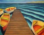 Boats on a blue green sea, 10″H x 8″W, $45 unframed, $95 framed